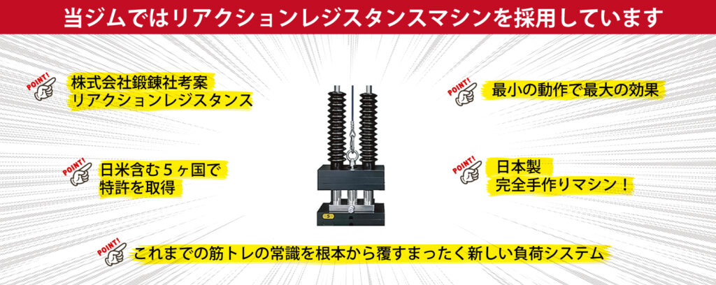 当ジムのマシンは、高効率のリアクションレジスタンスマシンを採用しています。